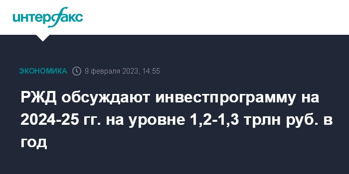 Москва. 9 февраля. INTERFAX.RU - ОАО "РЖД" обсуждает инвестпрограмму на 2024-25 гг. в размере 1,2-1,3 трлн руб., заявил в четверг первый замглавы компании Вадим Михайлов в ходе III российского форума по финансовой грамотности "Просто Капитал".