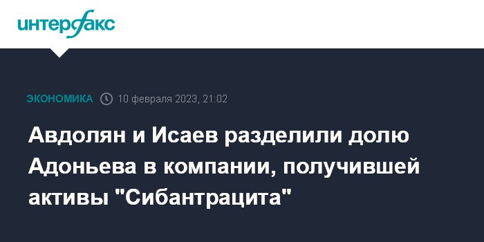 Москва. 10 февраля. INTERFAX.RU - Альберт Авдолян и Александр Исаев разделили между собой долю Сергея Адоньева в ООО "А-Проперти Развитие" (владеет ООО "Элси Холдинг", которому перешли активы группы "Сибантрацит").
