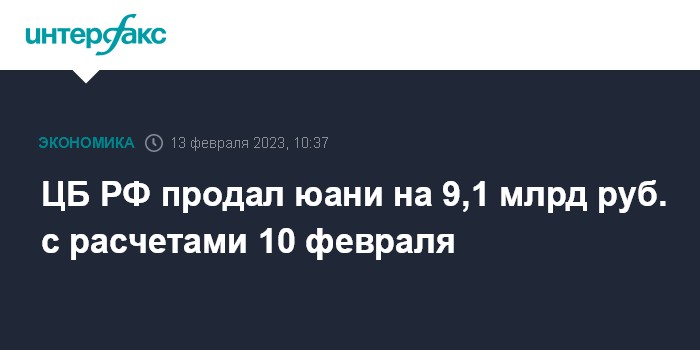 ЦБ РФ продал юани на 9,1 млрд руб. с расчетами 10 февраля