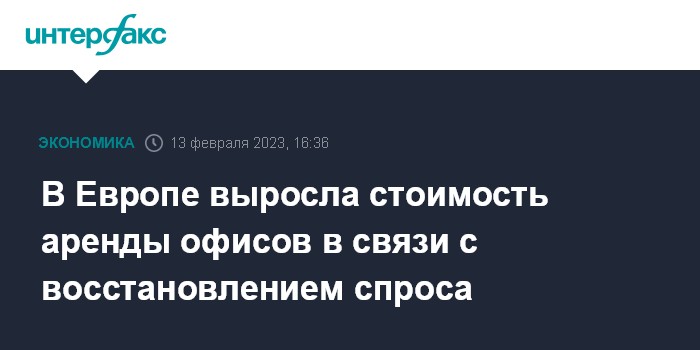 Москва. 13 февраля. INTERFAX.RU - В 2022 году со спадом пандемии в Европе резко восстановился спрос на офисные помещения, а это способствовало росту арендной платы и частично компенсировало коррекцию цен, связанную с ростом процентных ставок.