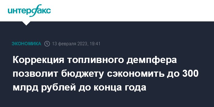 Коррекция топливного демпфера позволит бюджету сэкономить до 300 млрд рублей до конца года