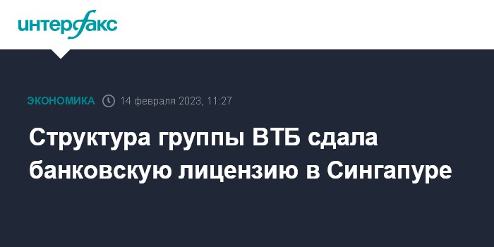 Москва. 14 февраля. INTERFAX.RU - Структура группы ВТБ отказалась от лицензии в Сингапуре, позволявшей осуществлять на этом рынке все основные банковские операции.