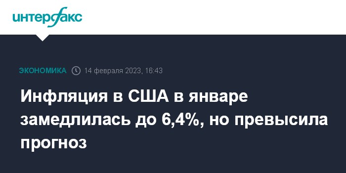 Инфляция в США в январе замедлилась до 6,4%, но превысила прогноз