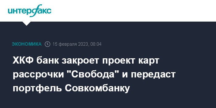 ХКФ банк закроет проект карт рассрочки "Свобода" и передаст портфель Совкомбанку
