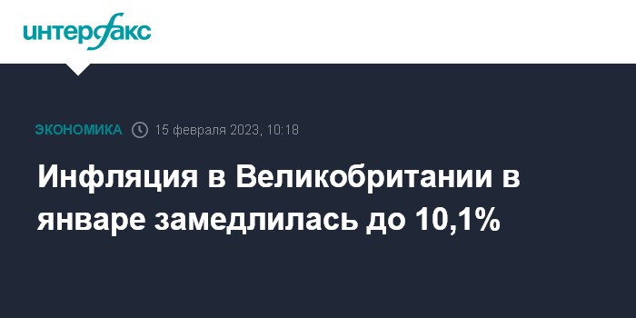 Москва. 15 февраля. INTERFAX.RU - Потребительские цены в Великобритании в январе выросли на 10,1% в годовом выражении, свидетельствуют данные Национального статистического управления (ONS) страны.