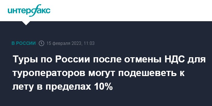 24 января на совещании с президентом РФ министр экономического развития Максим Решетников предложил с 1 января 2023 и до июля 2027 года освободить туроператоров от уплаты НДС на туры по России, включая поездки российских граждан и иностранных туристов, Минфин это предложение поддержал. Президент РФ Владимир Путин согласился с необходимостью этой меры.