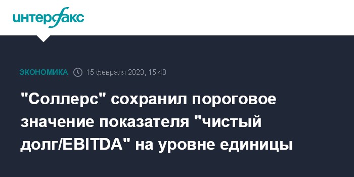 Москва. 15 февраля. INTERFAX.RU - Совет директоров ПАО "Соллерс" на заседании 13 февраля единогласно утвердил пороговое значение коэффициента "чистый долг/EBITDA" на уровне единицы, сообщила компания.