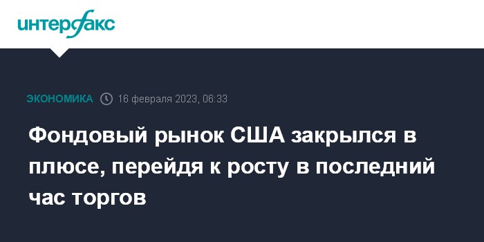 Москва. 16 февраля. INTERFAX.RU - Американские фондовые индексы завершили торги в среду в плюсе, причем к росту они перешли в последний час сессии.