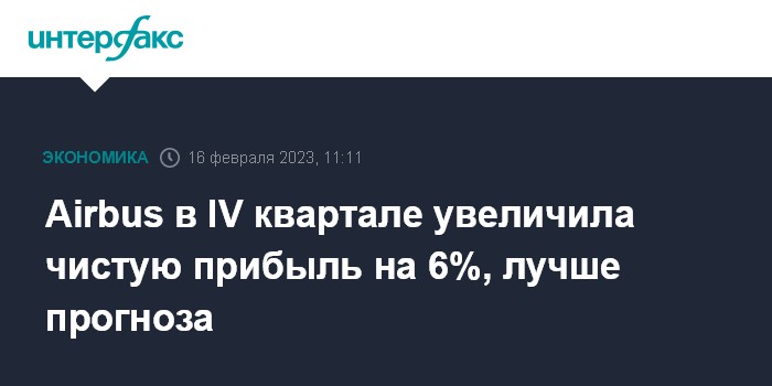 Москва. 16 февраля. INTERFAX.RU - Европейская аэрокосмическая корпорация Airbus SE в четвертом квартале увеличила чистую прибыль на 6%, что оказалось выше прогноза аналитиков.