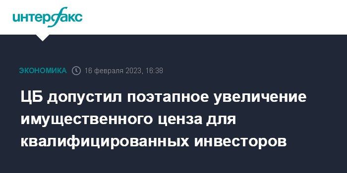 ЦБ допустил поэтапное увеличение имущественного ценза для квалифицированных инвесторов