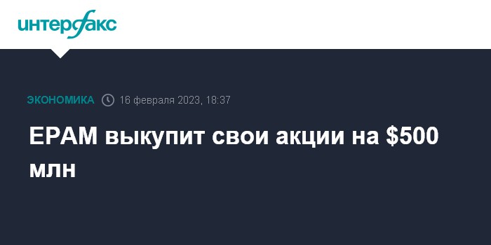 Москва. 16 февраля. INTERFAX.RU - Совет директоров EPAM Systems Inc. 13 февраля утвердил программу buyback объемом до $500 млн, сообщила компания.