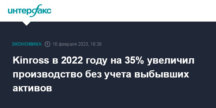 С учетом выбывших активов производство Kinross составило бы 2,2 млн унций, на 6% больше соответствующего результата 2021 года, сообщила компания