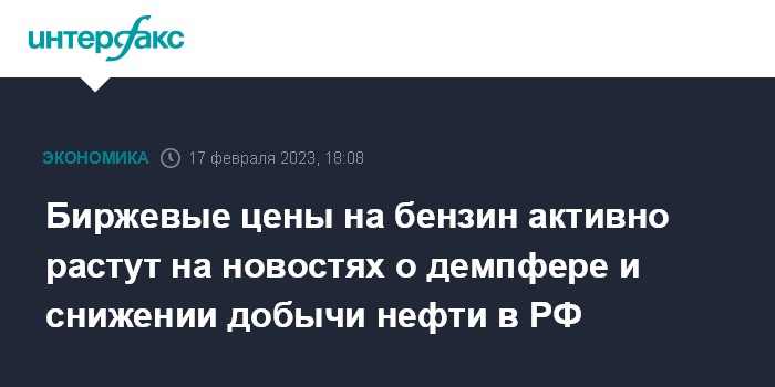 Биржевые цены на бензин активно растут на новостях о демпфере и снижении добычи нефти в РФ