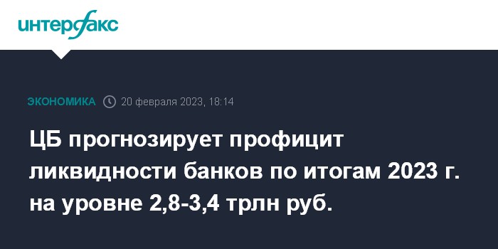 ЦБ прогнозирует профицит ликвидности банков по итогам 2023 г. на уровне 2,8-3,4 трлн руб.