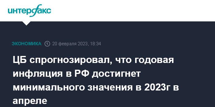 ЦБ спрогнозировал, что годовая инфляция в РФ достигнет минимального значения в 2023г в апреле