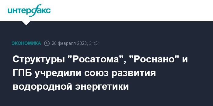 Учредителями союза выступили "Русатом Оверсиз", структура "Роснано" - стартап-студия "ТехноСпарк" (входит в инвестсеть Фонда инфраструктурных и образовательных программ "Роснано"), а также "H2 Инвест" (принадлежит "Газпромбанк-Развитию"), сообщили "Интерфаксу" в компаниях.