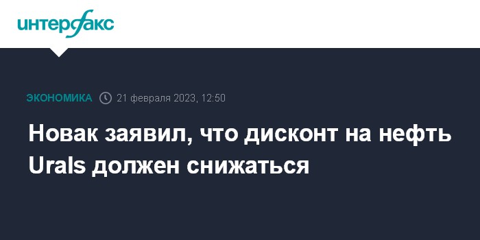 Москва. 21 февраля. INTERFAX.RU - Дисконт цены нефти Urals к Brent должен снижаться, принимаемые изменения в налогообложении должны это стимулировать, заявил журналистам вице-премьер РФ Александр Новак.
