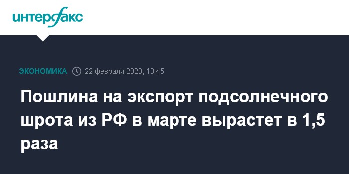 Пошлина на экспорт подсолнечного шрота из РФ в марте вырастет в 1,5 раза
