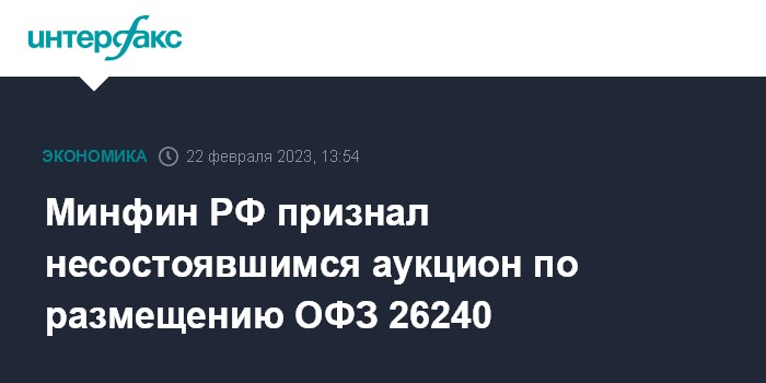 Минфин РФ признал несостоявшимся аукцион по размещению ОФЗ 26240