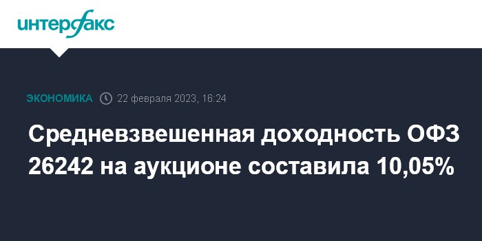Средневзвешенная доходность ОФЗ 26242 на аукционе составила 10,05%