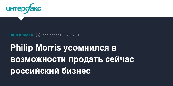 Москва. 22 февраля. INTERFAX.RU - Табачный концерн Philip Morris International (PMI), чьи попытки продать российский бизнес из-за событий на Украине пока не увенчались успехом, сомневается, что при действующем регулировании сделок с участием иностранных инвесторов в России это вообще возможно.