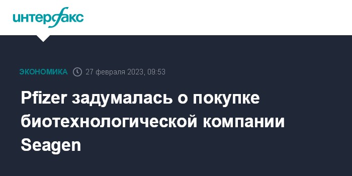 Москва. 27 февраля. INTERFAX.RU - Американская фармацевтическая компания Pfizer Inc. ведет переговоры о покупке биотехнологической Seagen Inc., пишет The Wall Street Journal со ссылкой на источники.