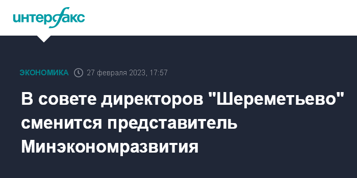 В совете директоров "Шереметьево" сменится представитель Минэкономразвития
