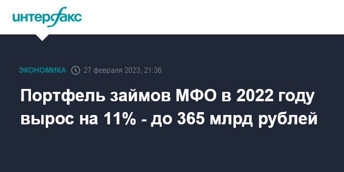 Портфель займов МФО в 2022 году вырос на 11% - до 365 млрд рублей