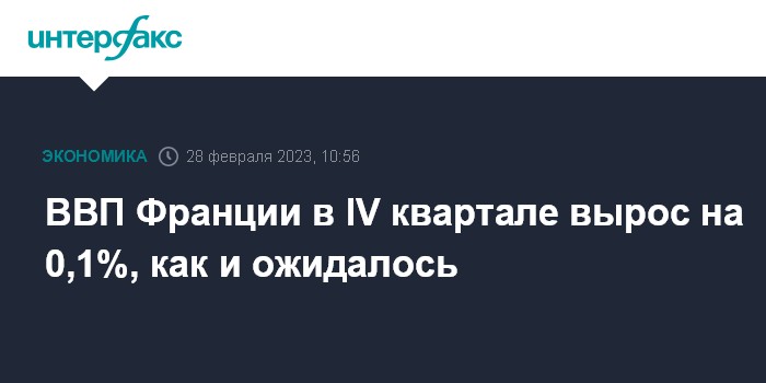 ВВП Франции в IV квартале вырос на 0,1%, как и ожидалось