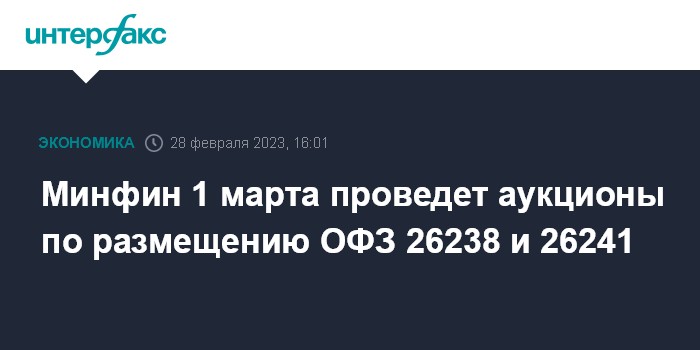 Минфин 1 марта проведет аукционы по размещению ОФЗ 26238 и 26241