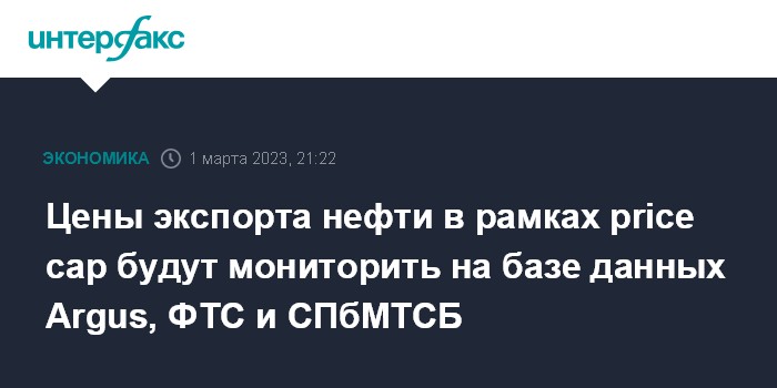 Цены экспорта нефти в рамках price cap будут мониторить на базе данных Argus, ФТС и СПбМТСБ