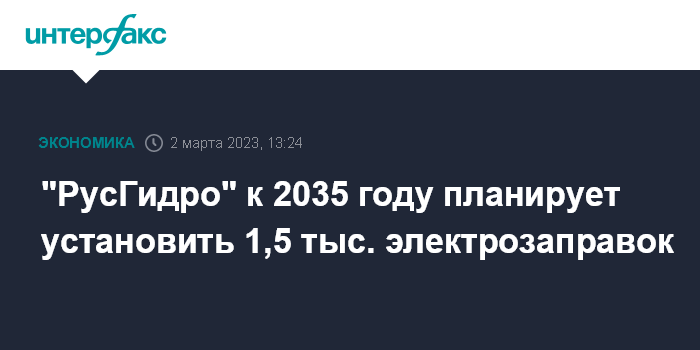 Москва. 2 марта. INTERFAX.RU - АО "Электрозарядные станции РусГидро" к 2035 году намерено установить в России 1,5 тыс. электрозаправок (ЭЗС) для автомобилей. Об этом сообщил гендиректор АО Дмитрий Беляев в ходе Красноярского экономического форума (КЭФ) в четверг.