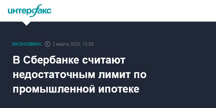 В Сбербанке считают недостаточным лимит по промышленной ипотеке