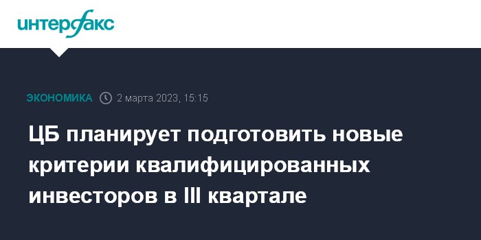 ЦБ планирует подготовить новые критерии квалифицированных инвесторов в III квартале