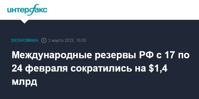 Международные резервы РФ с 17 по 24 февраля сократились на $1,4 млрд