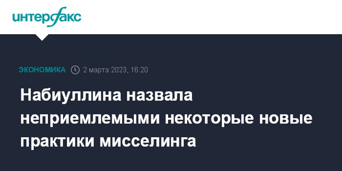Набиуллина назвала неприемлемыми некоторые новые практики мисселинга