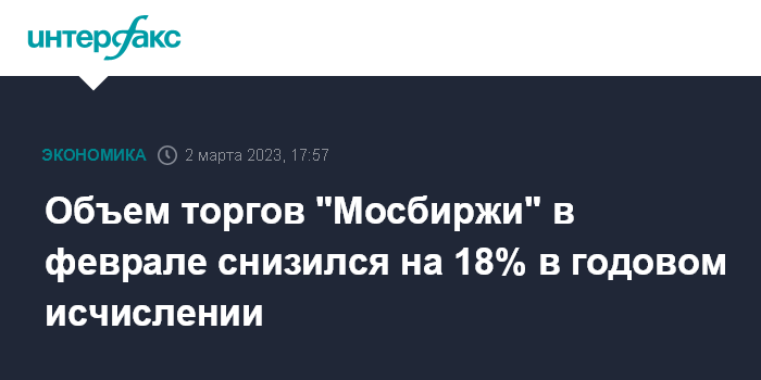 Объем торгов "Мосбиржи" в феврале снизился на 18% в годовом исчислении
