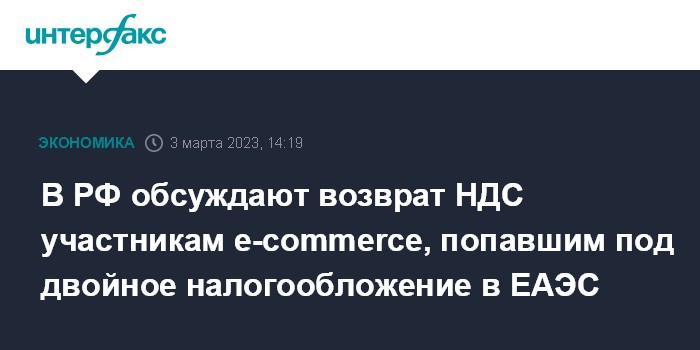 В РФ обсуждают возврат НДС участникам e-commerce, попавшим под двойное налогообложение в ЕАЭС