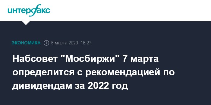 Набсовет "Мосбиржи" 7 марта определится с рекомендацией по дивидендам за 2022 год