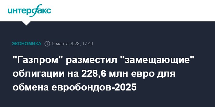 "Газпром" разместил "замещающие" облигации на 228,6 млн евро для обмена евробондов-2025