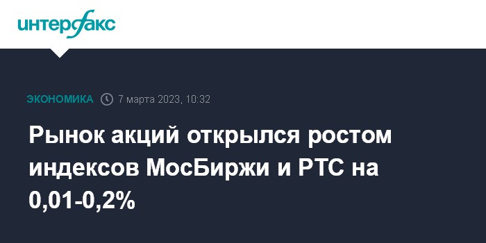 Рынок акций открылся ростом индексов МосБиржи и РТС на 0,01-0,2%