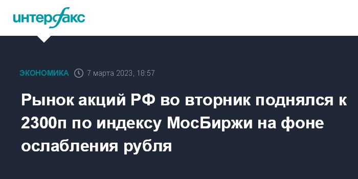 Рынок акций РФ во вторник поднялся к 2300п по индексу МосБиржи на фоне ослабления рубля