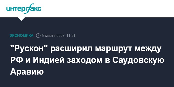 "Рускон" расширил маршрут между РФ и Индией заходом в Саудовскую Аравию