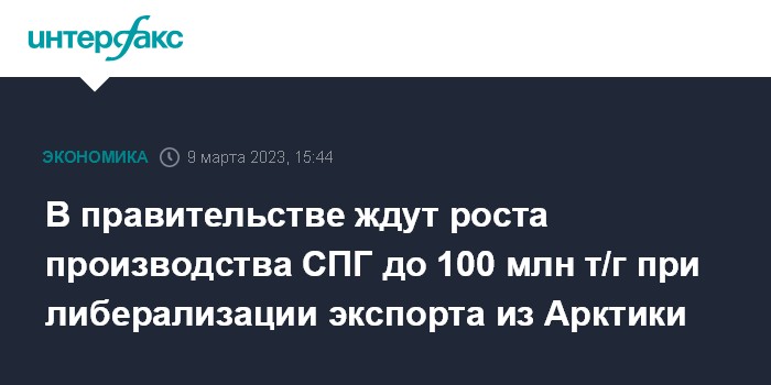 В правительстве ждут роста производства СПГ до 100 млн т/г при либерализации экспорта из Арктики
