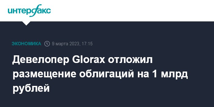 Девелопер Glorax отложил размещение облигаций на 1 млрд рублей