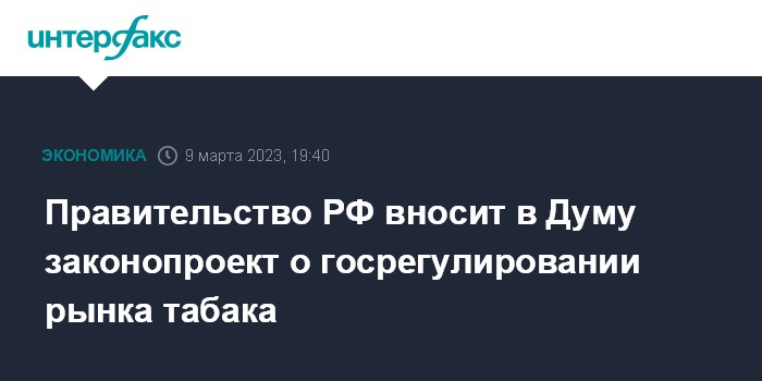 Правительство РФ вносит в Думу законопроект о госрегулировании рынка табака