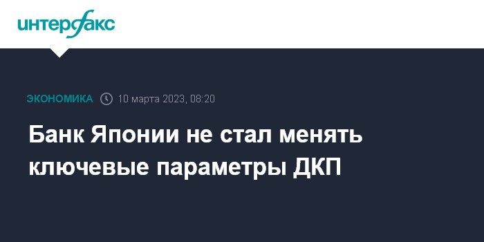 Москва. 10 марта. INTERFAX.RU - Банк Японии оставил неизменными основные параметры денежно-кредитной политики (ДКП) по итогам завершившегося в пятницу двухдневного заседания, которое стало последним для главы ЦБ Харухико Куроды, возглавляющего банк с 2013 года.