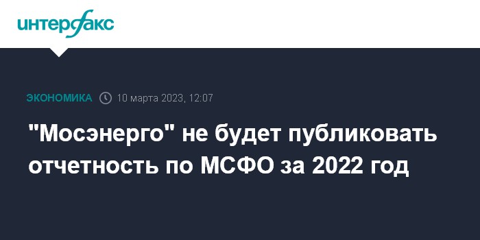 Москва. 10 марта. INTERFAX.RU - ПАО "Мосэнерго" не будет публиковать отчетность по МСФО за 2022 г., сообщила компания.