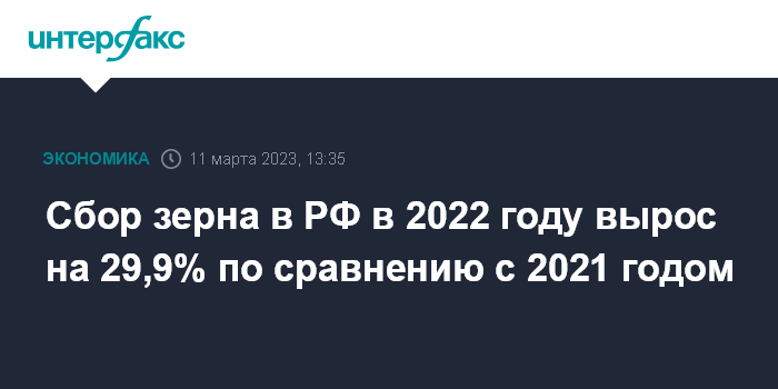 Сбор зерна в РФ в 2022 году вырос на 29,9% по сравнению с 2021 годом