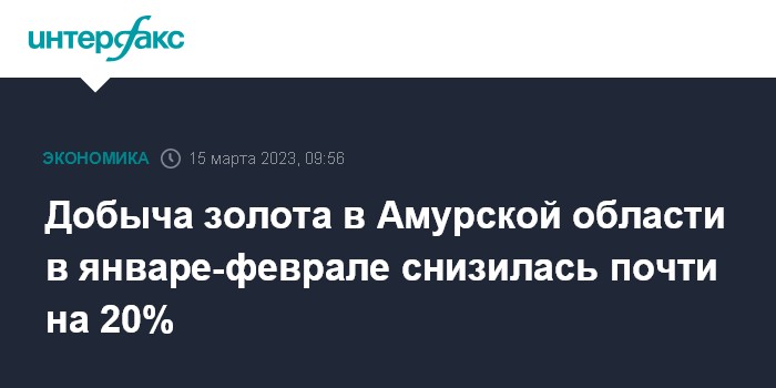 Добыча золота в Амурской области в январе-феврале снизилась почти на 20%